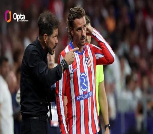 现年34岁的格列兹曼本赛季至今代表马竞出场16次,其中7次首发,打进5球。