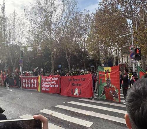 热爱皆平等,河南球迷赛前在球场外声援阿奇姆彭