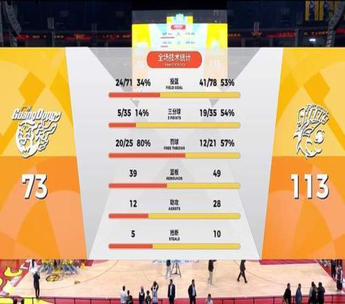 看来,广东队主场想要翻盘,基本上没有可能性了,毕竟单节只有10分钟,且还是单外援,广东队的手感冰冷,怎么可能去实现翻盘呢?果不其然,上海队上来轰出5-0,把领先优势拉开到了40+。落后那么多,杜锋也索性破罐子破摔了,直接来了个全华班。再看上海队,丝毫没有手软的意思,继续摁着十一冠王摩擦。最终,广东队主场爆冷,以73-113惨败给了上海队,狂输40分。